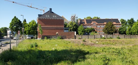 Von daher hält unsere Fraktion es für eine stadtentwicklungspolitische Chance, das Grundstück in städtischer Regie weiterzuentwickeln und darauf in großzügiger Weise - wie exemplarisch auf dem zweiten nachfolgenden Kartenausschnitt grob in grün skizziert- eine Grün- und Parkanlage zu erstellen und somit einen hochattraktiven Zugang zum historischen Rheintor als nördlichem Eingang zur Innenstadt beiderseits der Rheinstraße zu schaffen.