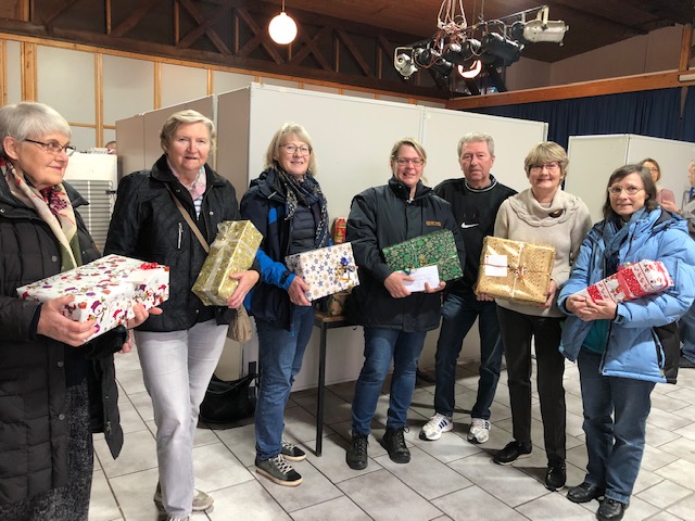 Dieser Dank bestand aus einem Obulus für eine interne Feier sowie mehreren Schuhkarton-Geschenken für Single-Haushalte (das Foto zeigt nur einen kleinen Teil). Als Besonderheit in diesem Jahr konnten wir einen Karton mit gespendetem Honig überreichen und passend zur Jahreszeit wurden auch noch 10 kg frisches Obst für die wöchentliche Lebensmittelausgabe hinzugefügt.