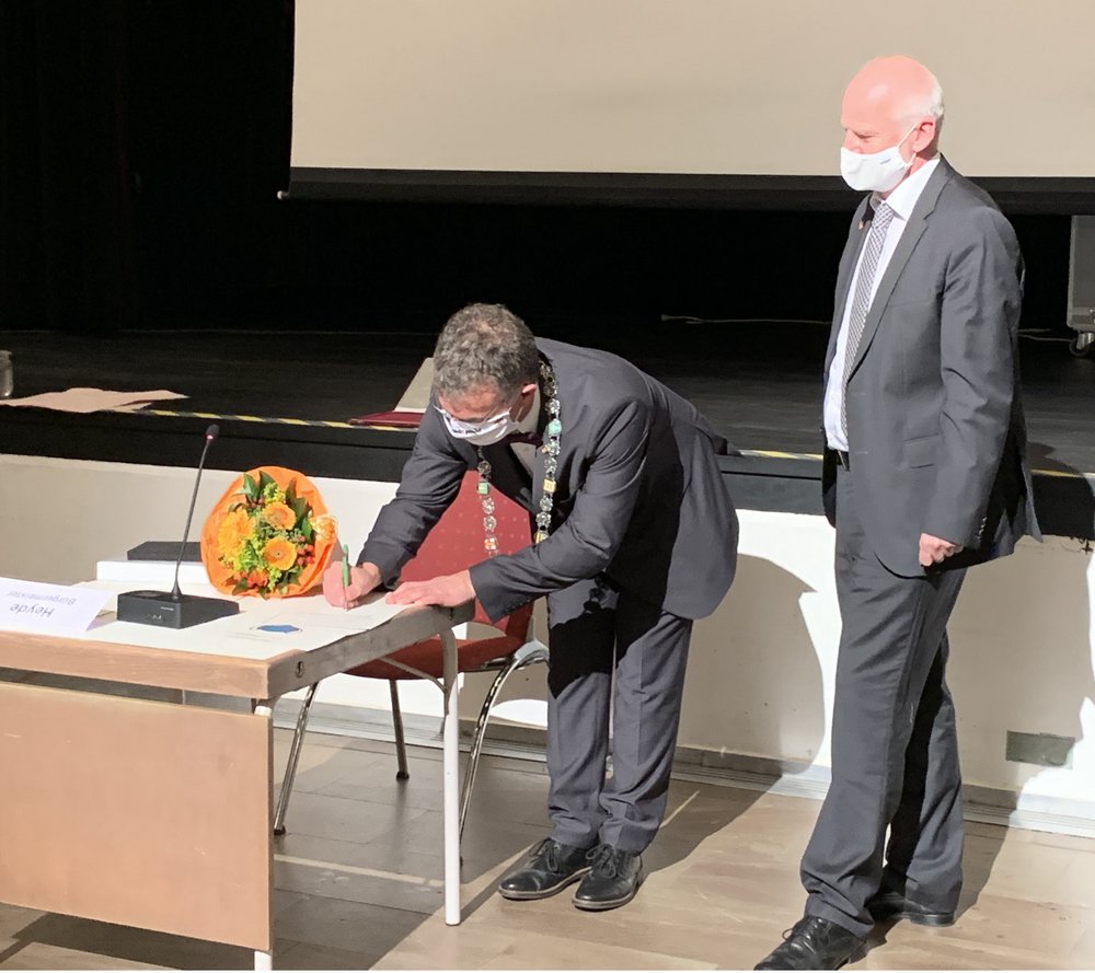 "Ich freue mich auf die Zusammenarbeit mit einem starken und kompetenten Verwaltungsteam. Ich wurde sehr freundschaftlich willkommen geheißen", betonte Heyde in seiner Antrittsrede. In dieser hob er auch hervor, dass die Stadt weiterhin vor großen Herausforderungen stehe.