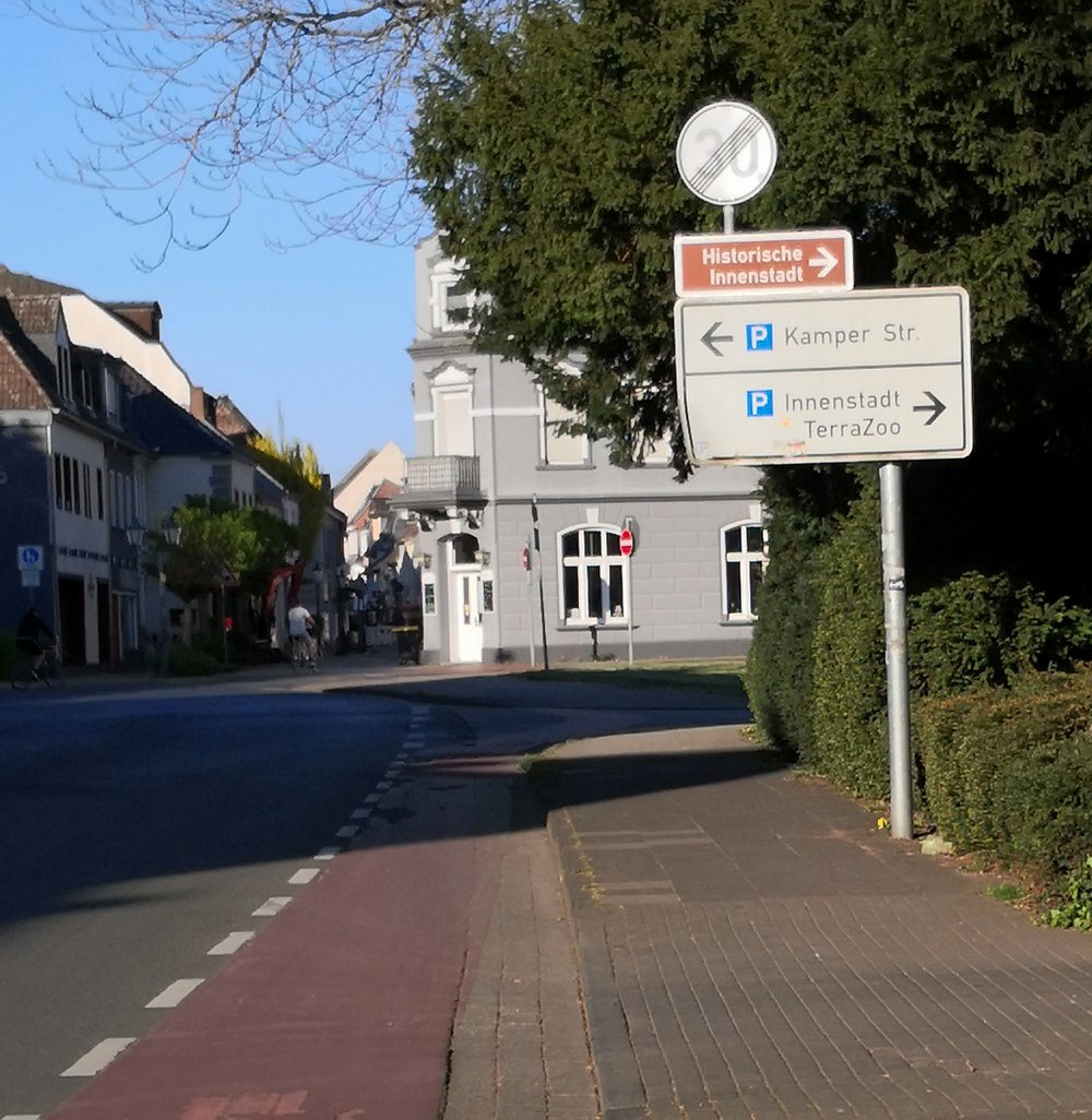 Auf einen Schildbürgerstreich ließe sich tippen angesichts zweier Beschilderungen in der Rheinberger Innenstadt. Die Grüne Fraktion hat das zum Anlass für eine Anfrage an die Verwaltung genommen.