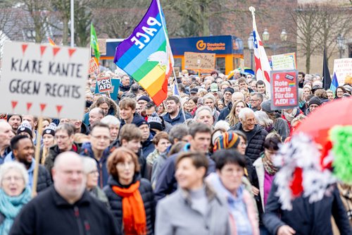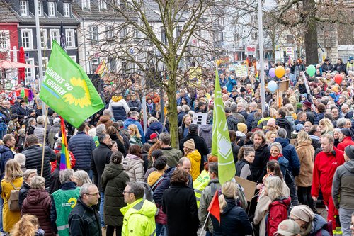 Die Resonanz der Rheinbergerinnen und Rheinberger auf den Aufruf zur Demonstration war überwältigend: 2500 Menschen versammelten sich am Samstag auf dem Marktplatz und zogen anschließend friedlich durch die Innenstadt.