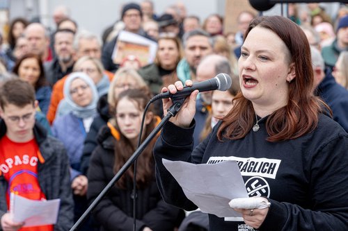 Auf der folgenden Abschlusskundgebung zeigten sich zwei der Organisatoren der Demo, Sarah Blome und Julian Heiermann, begeistert vom Engagement ihrer Mitbürgerinnen und -mitbürger: "Wahnsinn, ihr seid so viele."