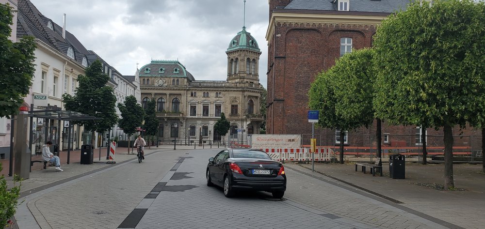 "Immer wieder ist sie in den vergangenen Jahrzehnten aufgetaucht: Die Frage, wie der Verkehr in der Rheinberger Innenstadt geregelt werden soll. Und immer wieder hat sich die Diskussion rasch auf die Frage fokussiert, ob die Durchfahrt an Holz- und Fischmarkt geöffnet bleiben soll oder besser geschlossen würde. Das trieb stets verlässlich die Emotionen hoch, von der vermeintlichen „Sperrung der Innenstadt“ war dann zu hören und zu lesen. Dieses „Framing“ war überaus wirkungsvoll, und so blieb bisher alles beim Alten.